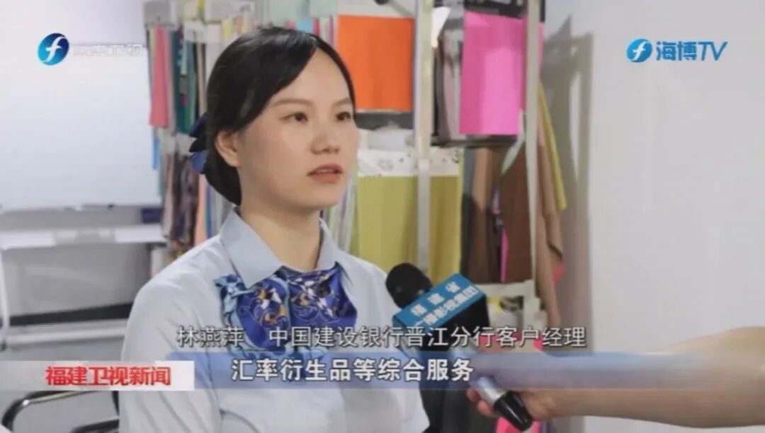 中国建设银行福建晋江分行客户经理 林燕萍:“根据企业外贸发展的需求,我们提供信贷融资、外汇结汇优惠,汇率衍生品等综合服务,为客户提供资金保障,帮助客户更有信心做好多元化布局、开拓海外市场。”