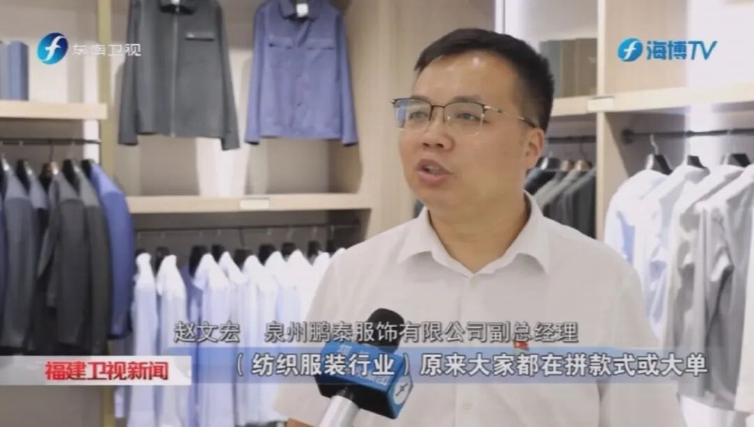 泉州鹏泰服饰有限公司 副总经理 赵文宏:“纺织服装行业原来大家都在拼款式(拼)大单,(而)我们最小的订单一件也起订,我们通过智能化数字化的技术和生产工艺,解决了生产小单的效率低的矛盾。”