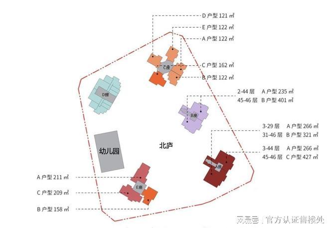 1栋B座:148米,46层,共84户,朝南为主,三梯两户,约235平,401平(顶复)